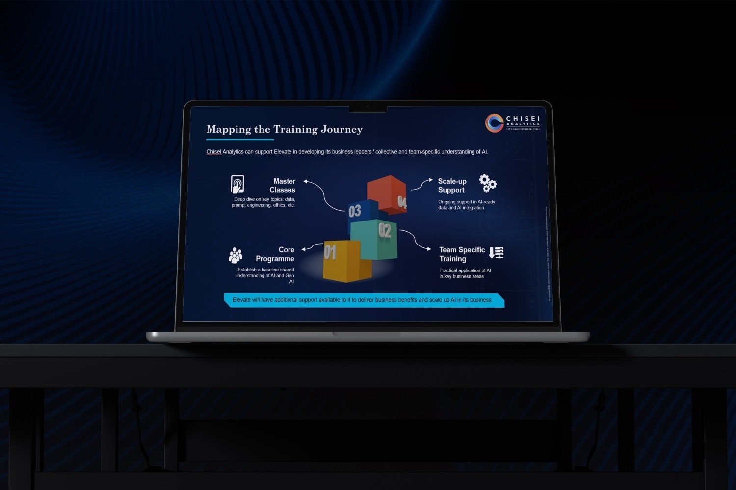 Creative Nexus designed a strategic company and sales presentation for Chisei Analytics, highlighting its AI consulting expertise, operating models, and enterprise AI capabilities.