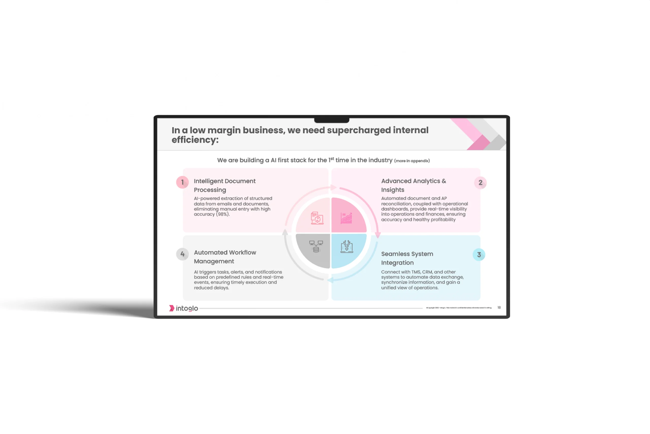 Intoglo now has a sharp, persuasive pitch that communicates both operational depth and strategic clarity, positioning the company strongly for growth-stage investor conversations.